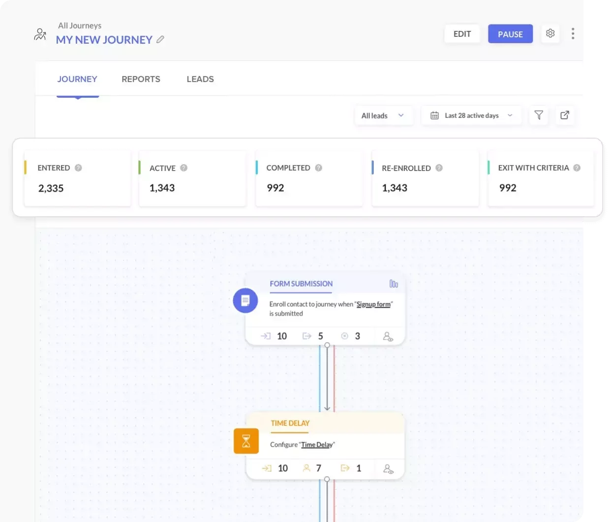 Every lead converts differently. Visualize and design unique engagement paths for every lead using journeys. Adding context and offering solutions is what boosts customer engagement.
